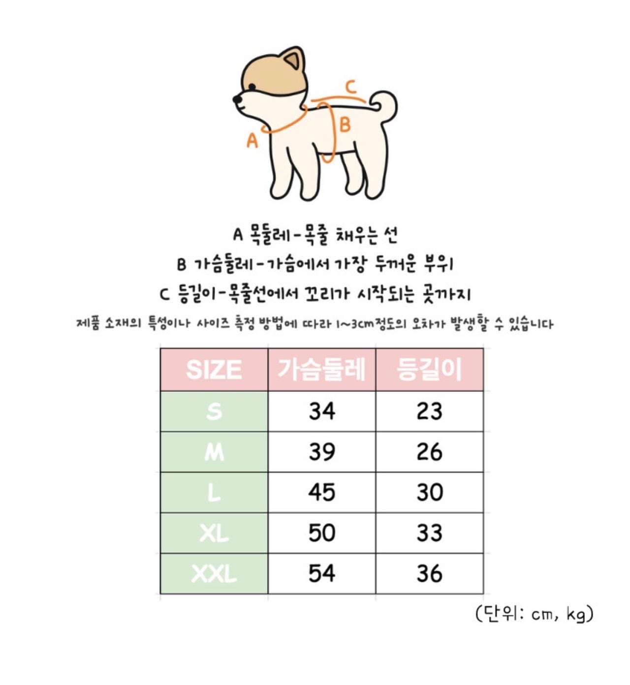 XXL:胸回り54cm/背丈36cm
