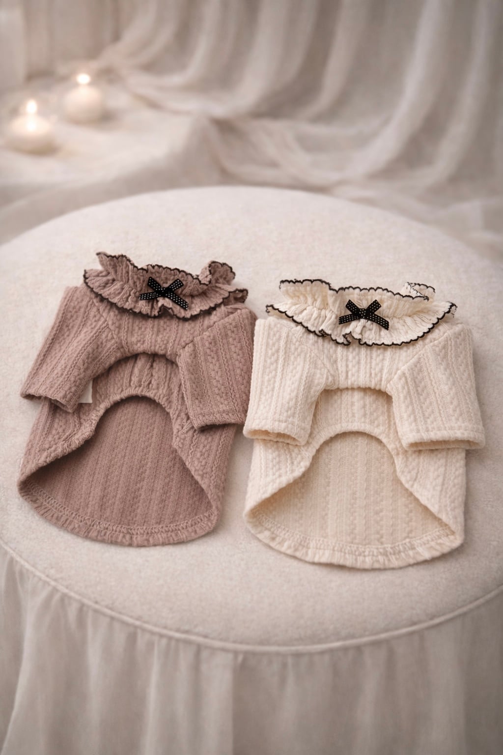 • S:首回り18〜22cm/胸回り25〜32cm/背丈18〜22cm/体重目安〜2.5kg